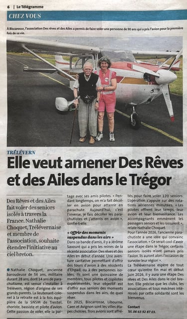 Notre objectif : Apporter de la joie, du bonheur et du rêve aux séniors souffrant de solitude en leur offrant un tour d'avion pour leur faire découvrir leur territoire vu du ciel.